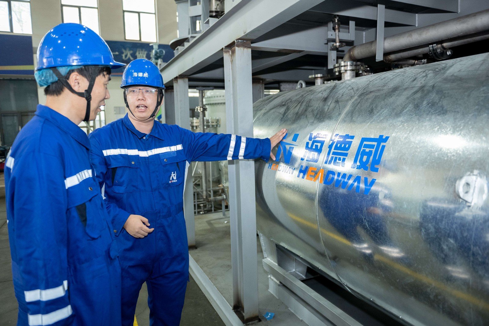 海洋衛士?船載碳捕集系統依托海德威自主設計的高速離心脫碳技術和高性能吸收劑,以高速旋轉形成的離心力場替代傳統重力場,顯著提升了氣液兩相傳質效率,系統脫碳效率超過90%,二氧化碳捕集純度可達99.6%以上,具有脫碳效率高、體積小、能耗低、安裝及儲運便捷等優勢。