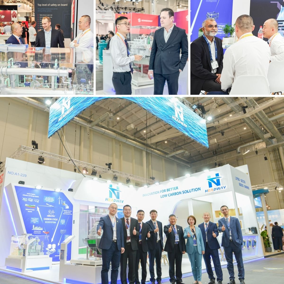 始于1963年的德國漢堡國際海事展覽會(SMM),是目前全球海事界規模最大、專業水平最高、影響力最強的國際貿易展覽會。本屆展會現場,海德威展出了涵蓋甲醇燃料供給系統、氨燃料供給系統、船舶尾氣脫硫系統、碳捕集與再利用系統、壓載水處理系統等為核心的低碳航運產品生態,以及固態儲氫、AEM制氫、二氧化碳加綠氫合成綠色甲醇等行業最新前沿技術。